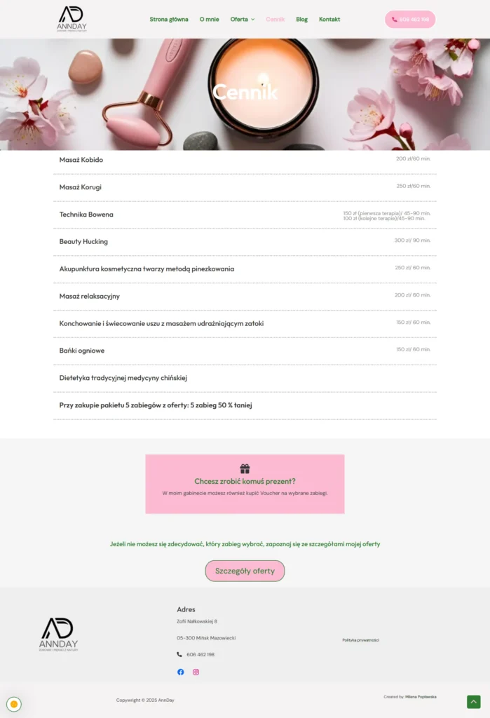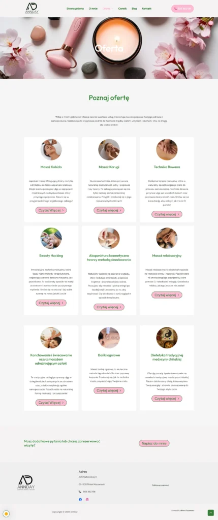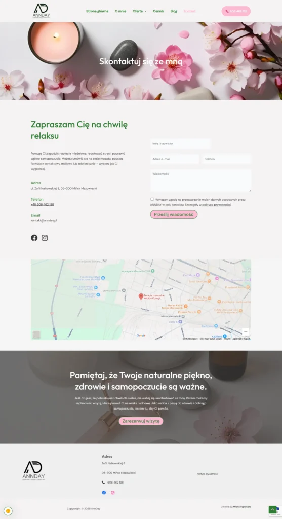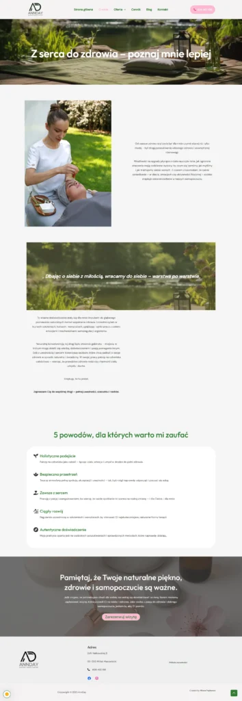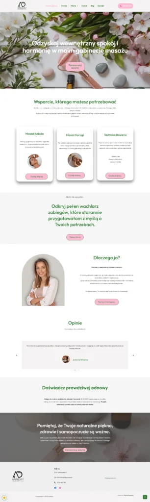 Dla mojej klientki stworzyłam nową stronę internetową od podstaw, zastępując dotychczasową wersję. Nowa strona została zaprojektowana tak, aby w pełni oddać charakter marki i wspierać rozwój jej działalności.